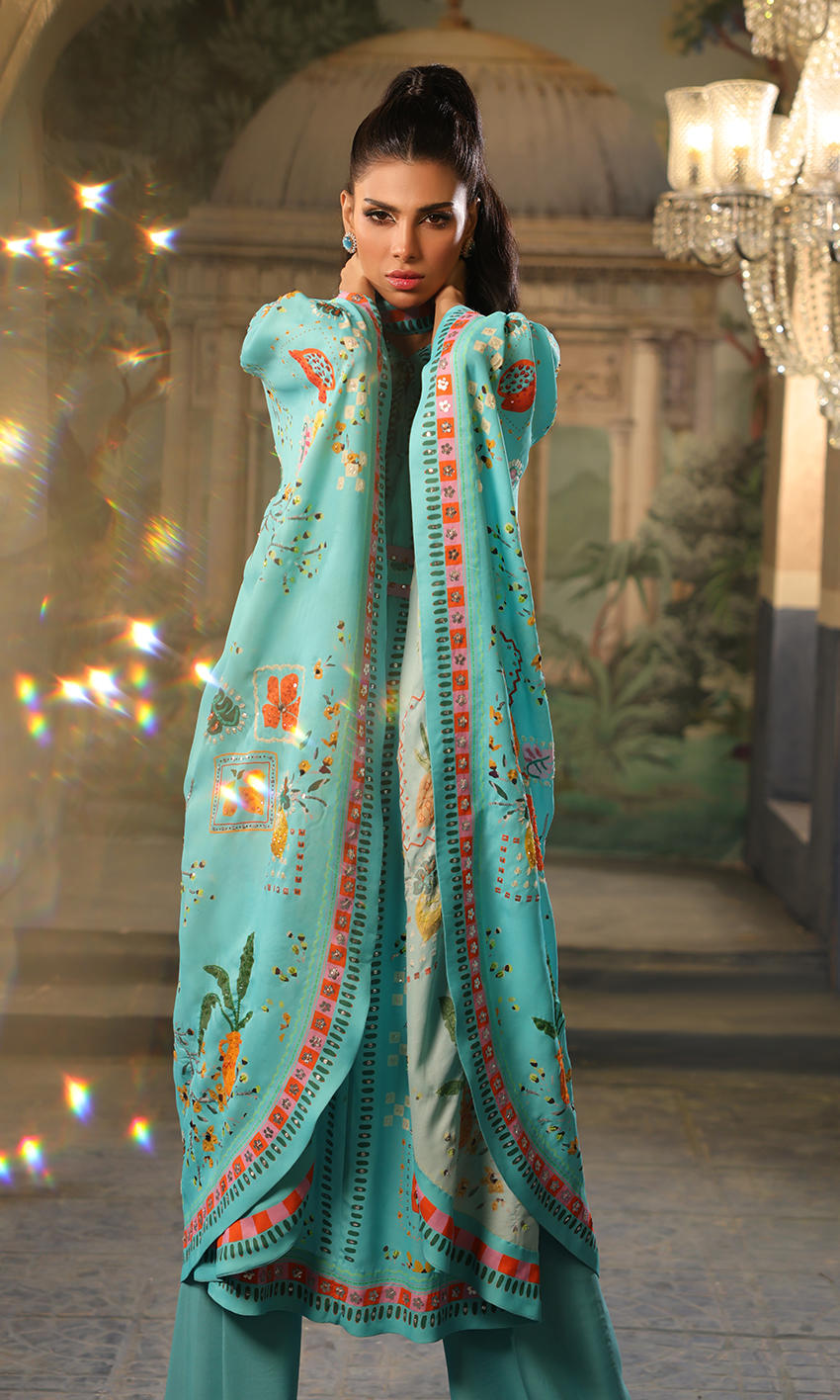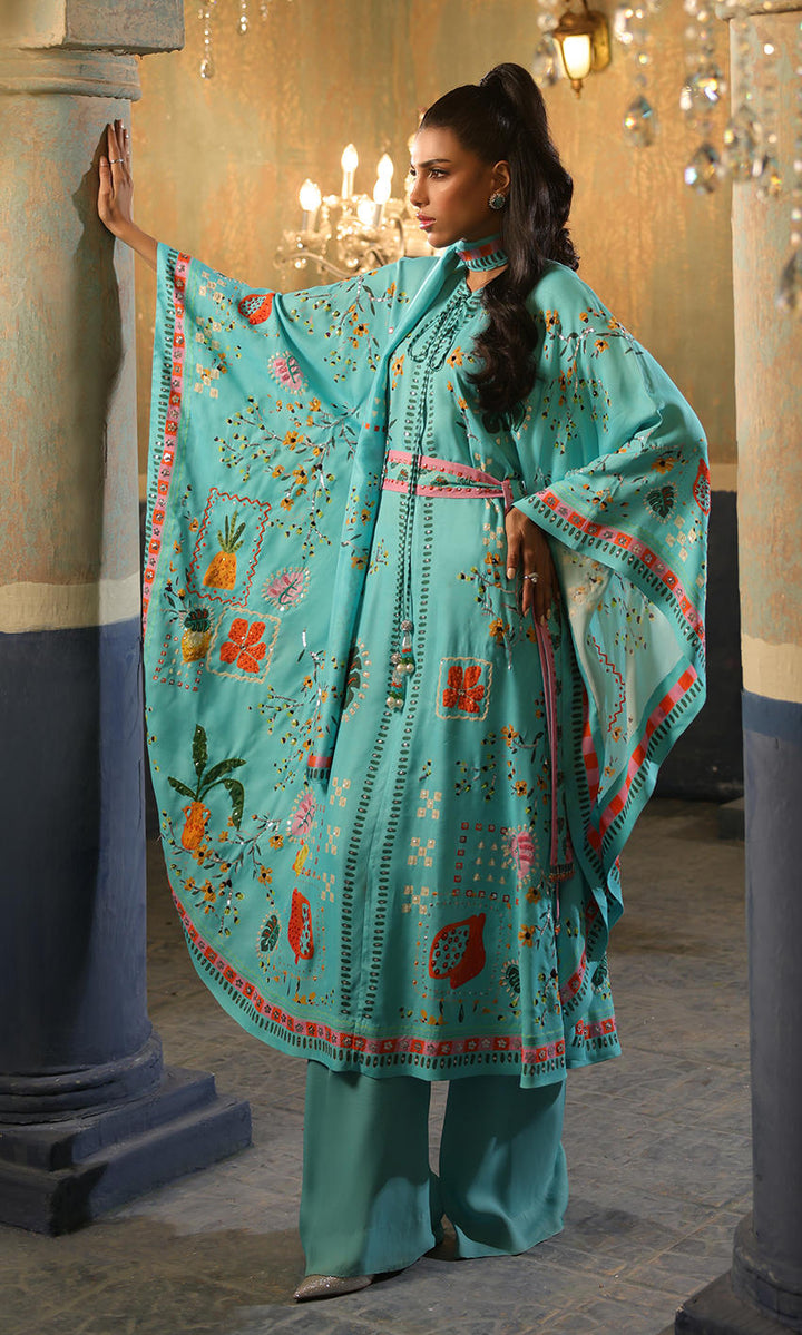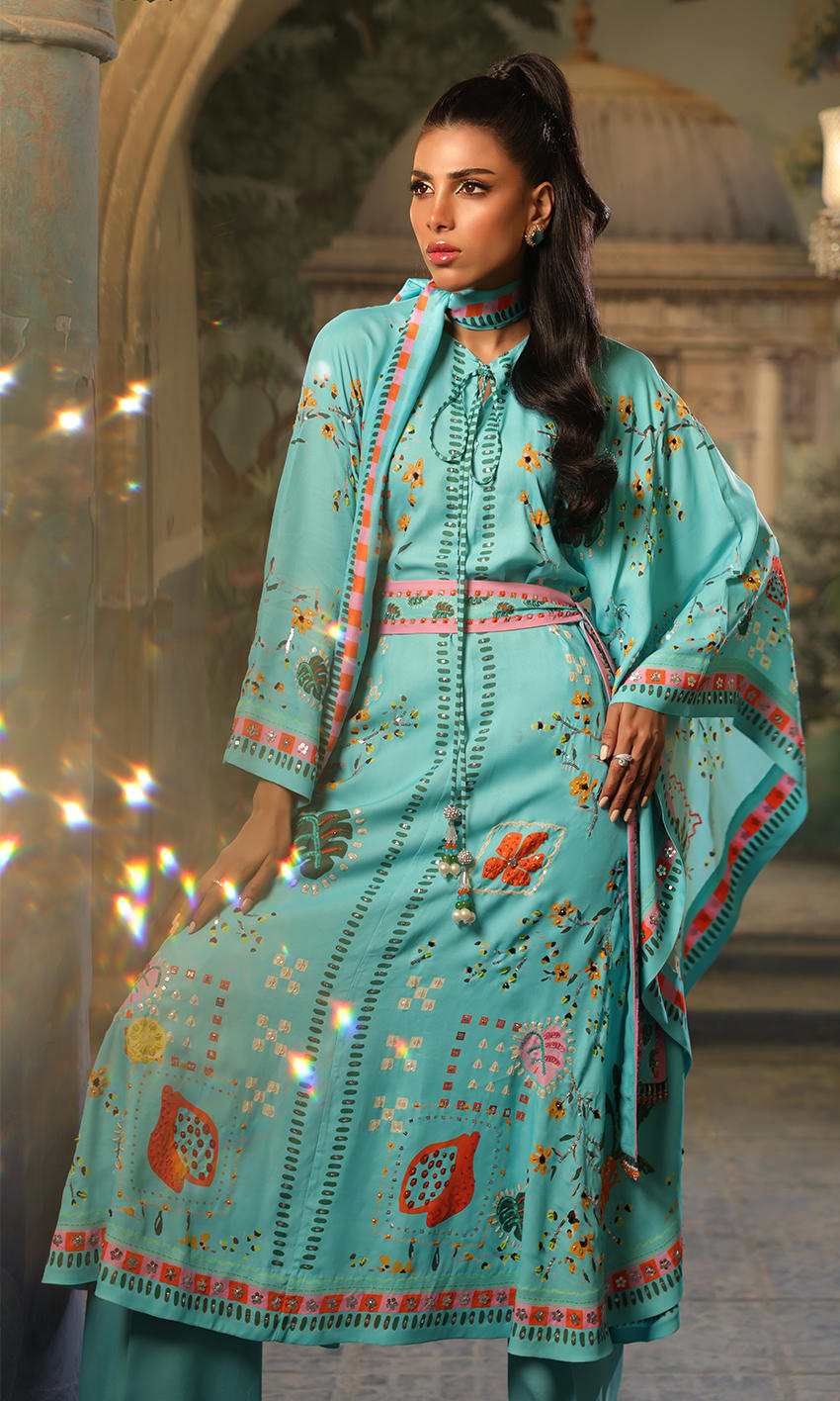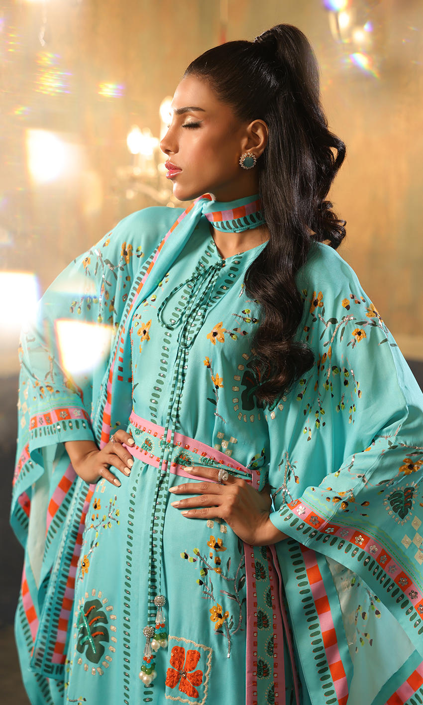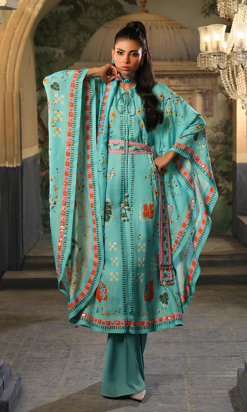 Colourful boho print comes together with sequin detailing for this cool kaftan look.