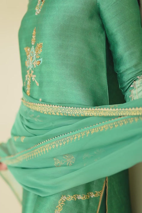 Our signature Mina Hasan block print is paired with gorgeous zardozi details in this striking plum outfit! With beautiful and delicate work throughout, this piece is easy to dress up or down for many occasions! Complete it with an contrasting ombre dupatta.