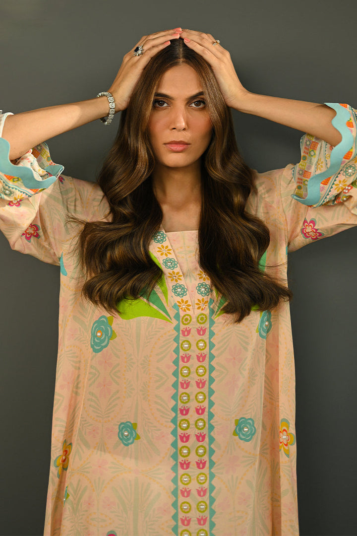 This peach pure crepe printed loose fit shirt features a delicate floral pattern that adds a soft, feminine touch to your wardrobe. The warm peach hue is complemented by subtle, yet vibrant flowers and leaf motives. Its relaxed, flowing silhouette offers both comfort and style, making it perfect for casual days or laid-back outings. The breathable fabric ensures you stay cool, while the soft color and floral print bring a refreshing, effortless vibe to your summer wardrobe. Pants are an add on. Shirt maximum length 56