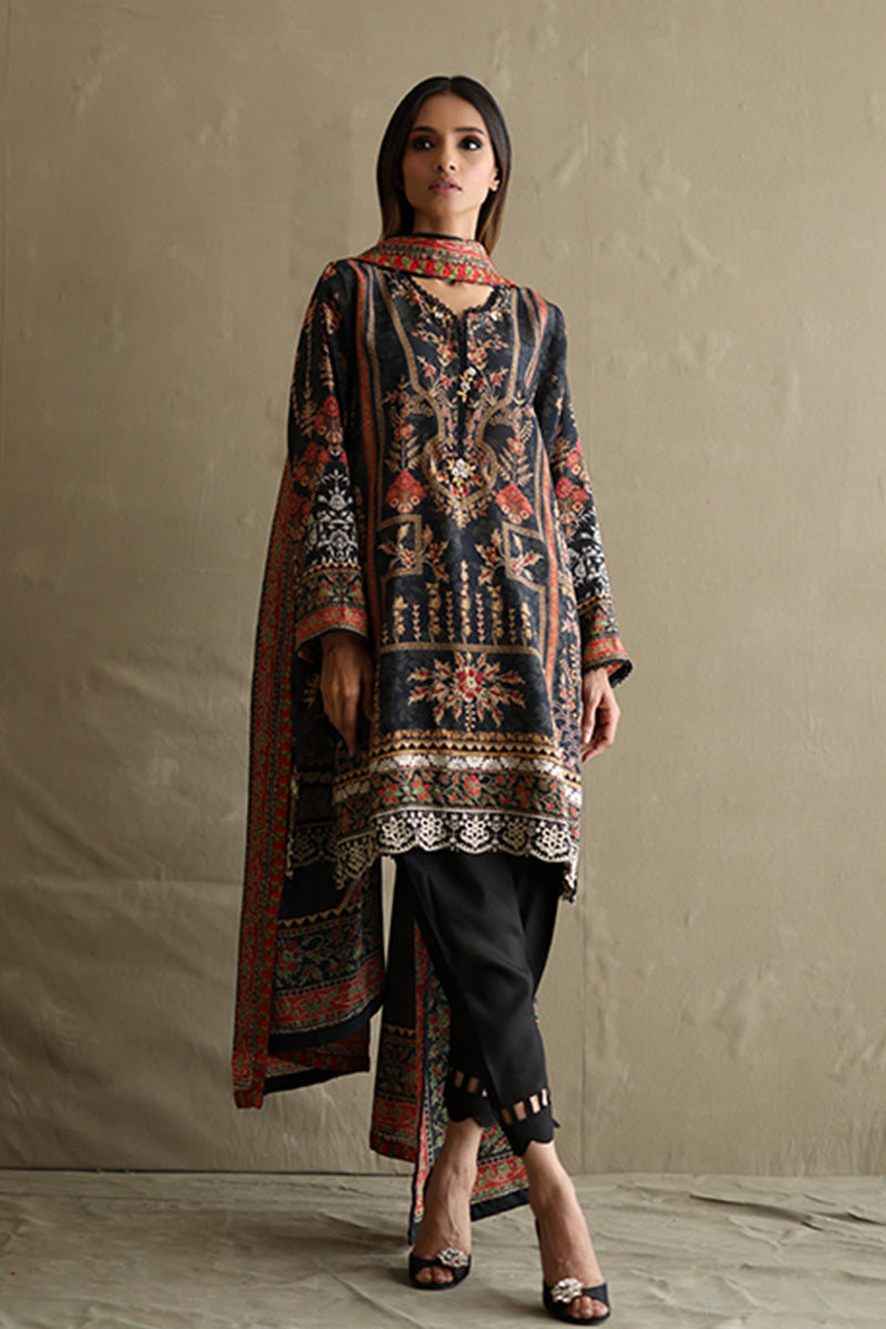 Our classic Mina Hasan digital kurtas come back in this monochrome number with red accents! Easy to wear and effortlessly elegant, this piece is a must-have in every wardrobe! Shirt and...