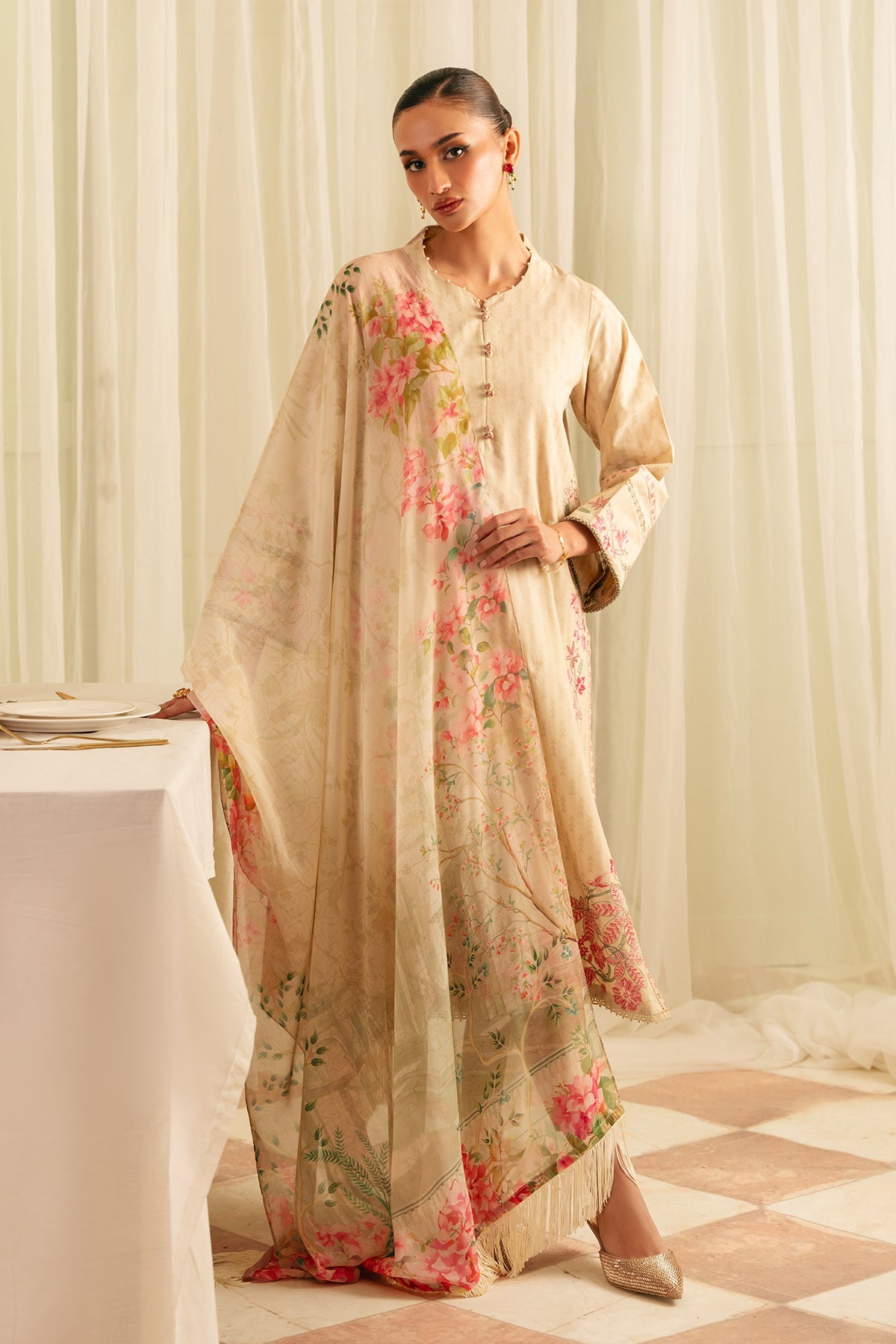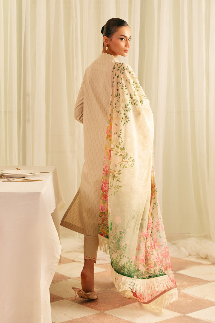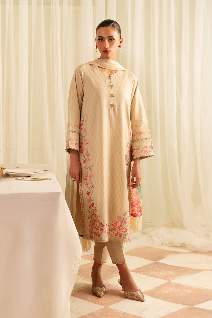 Dyed Embroided shirt (Jacquard) - 3.0M Add-On: Dyed Embroided border Front, Sleeves & Trouser (Jacquard)Digital Printed Dupatta (Silk) - 2.5M Dyed Trouser (Cambric) - 1.7M