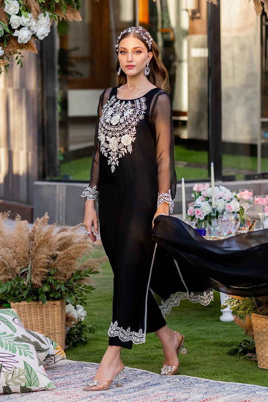 Introducing our stunning organza shirt, intricately embellished with machine embroidery on both front and back, delicately detailed with lace. Paired effortlessly with straight trousers and an organza dupatta, this ensemble...