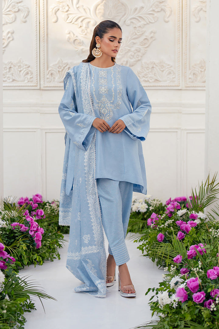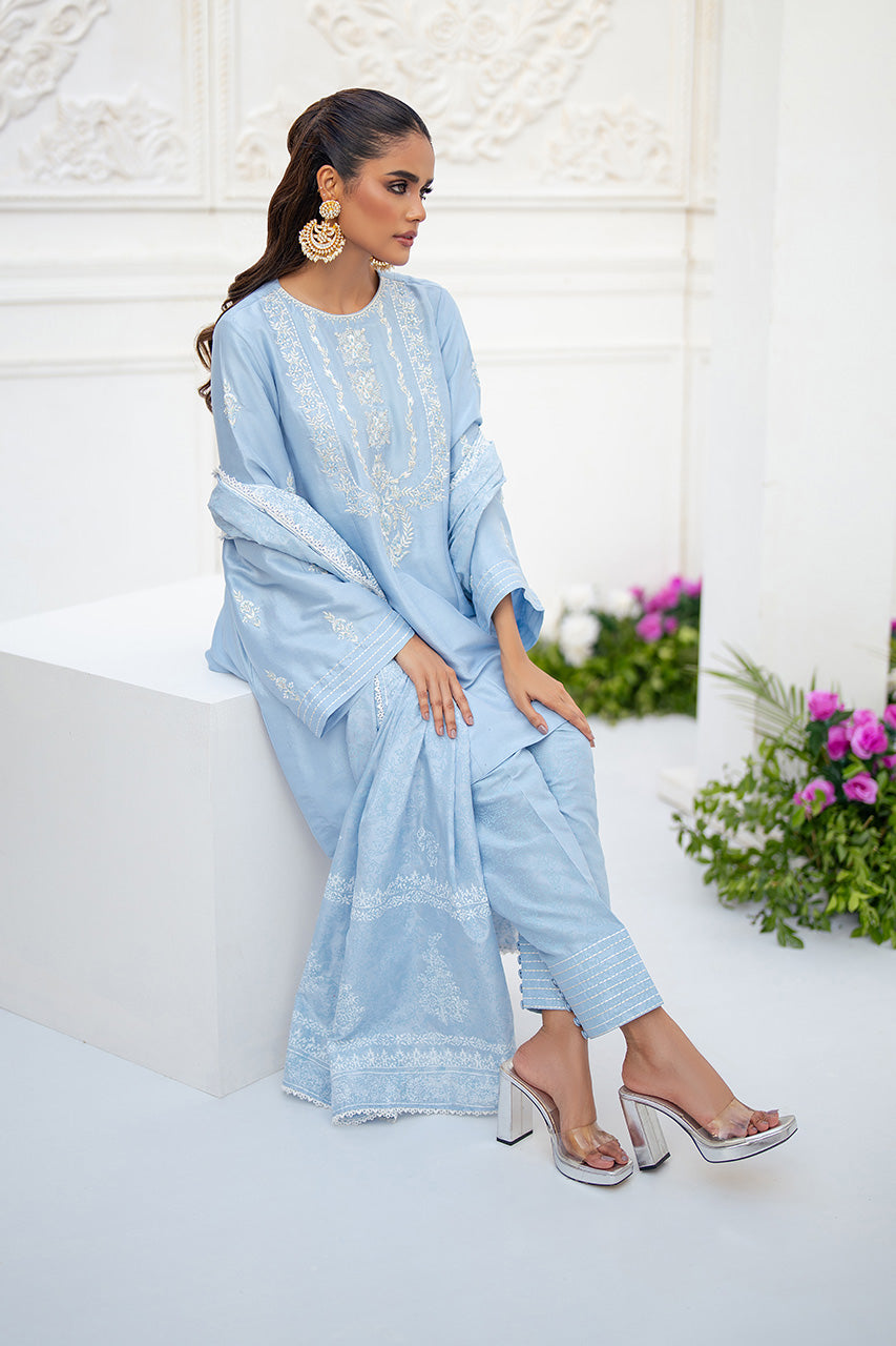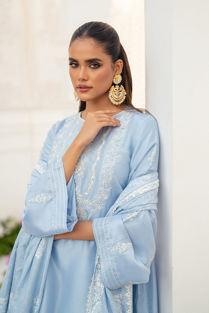 Introducing our exquisite Aasmani Short Shirt Ensemble, crafted from luxurious raw silk that drapes beautifully. This stunning piece features delicate embroidery on the front neck and sleeves, adding an enchanting touch of elegance. The ensemble is beautifully complemented by a silk dupatta, adorned with full block print and finished with soft milky lace on all four sides. Paired with matching full block print raw silk pants, this outfit radiates sophistication and charm, making it perfect for any occasion, from festive celebrations to elegant gatherings.