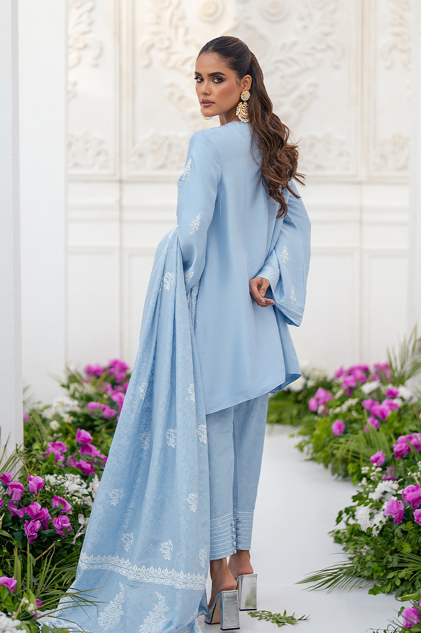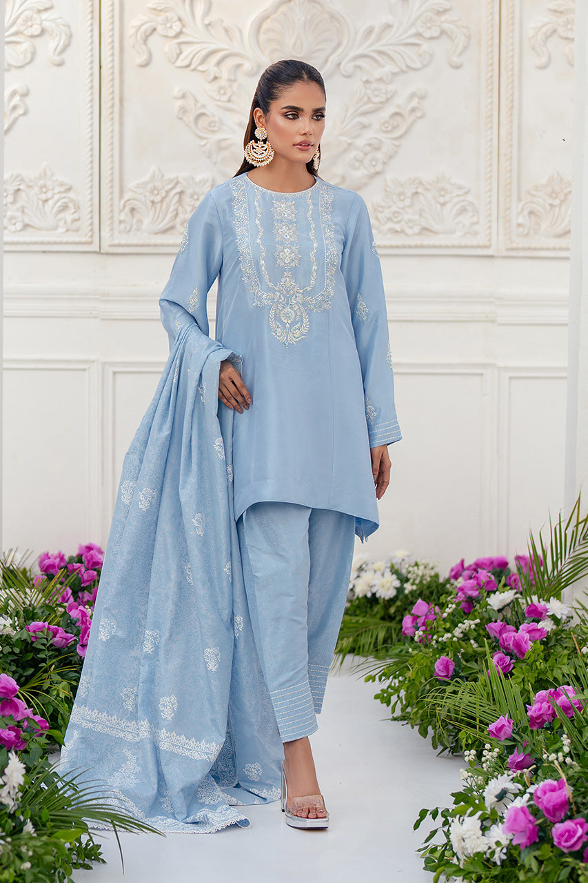 Introducing our exquisite Aasmani Short Shirt Ensemble, crafted from luxurious raw silk that drapes beautifully. This stunning piece features delicate embroidery on the front neck and sleeves, adding an enchanting...