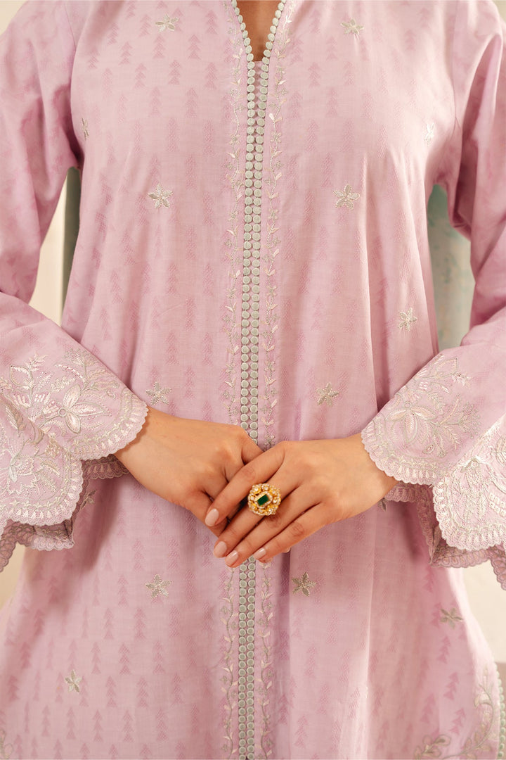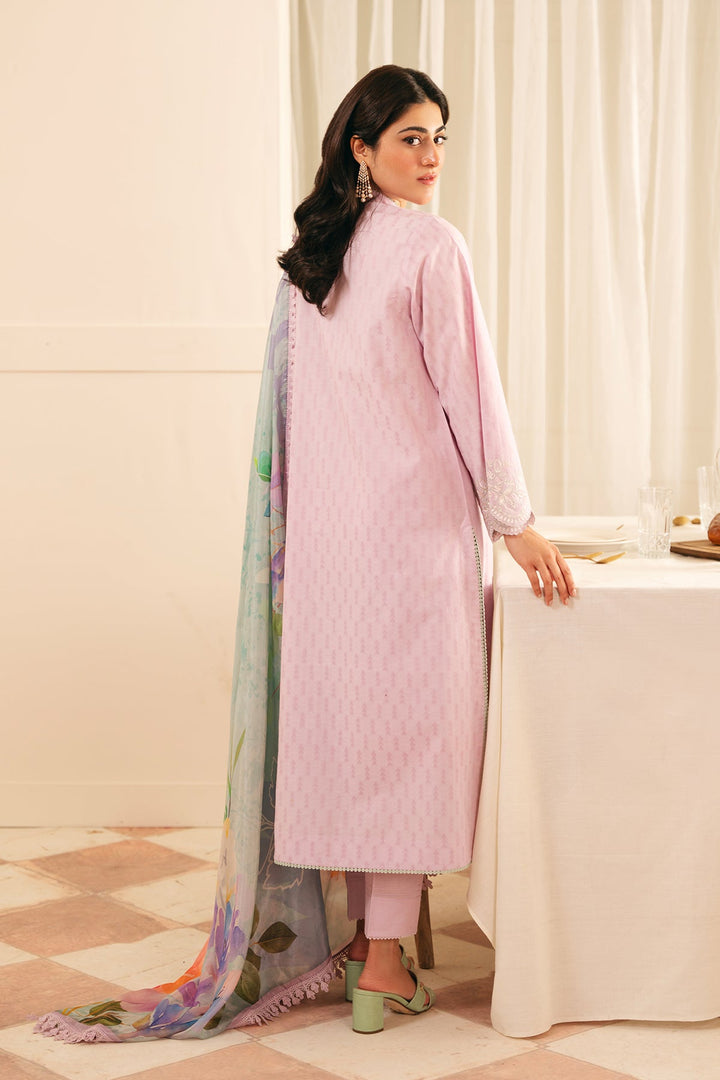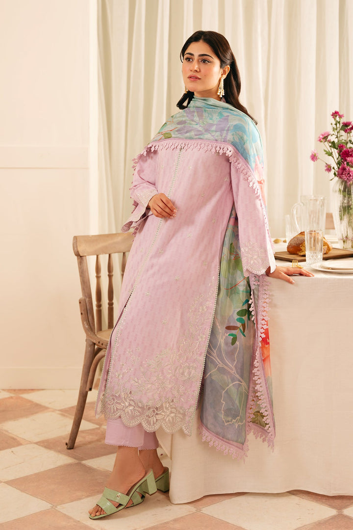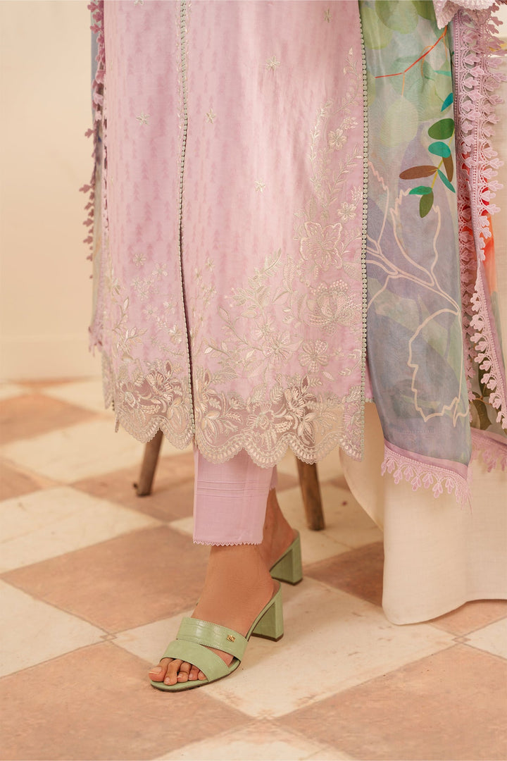 Dyed Embroided shirt (Jacquard) - 3.0M Add-On: Dyed Embroided Front Border (Organza) Digital Printed Dupatta (Silk) - 2.5M Dyed Trouser (Cambric) - 1.7M