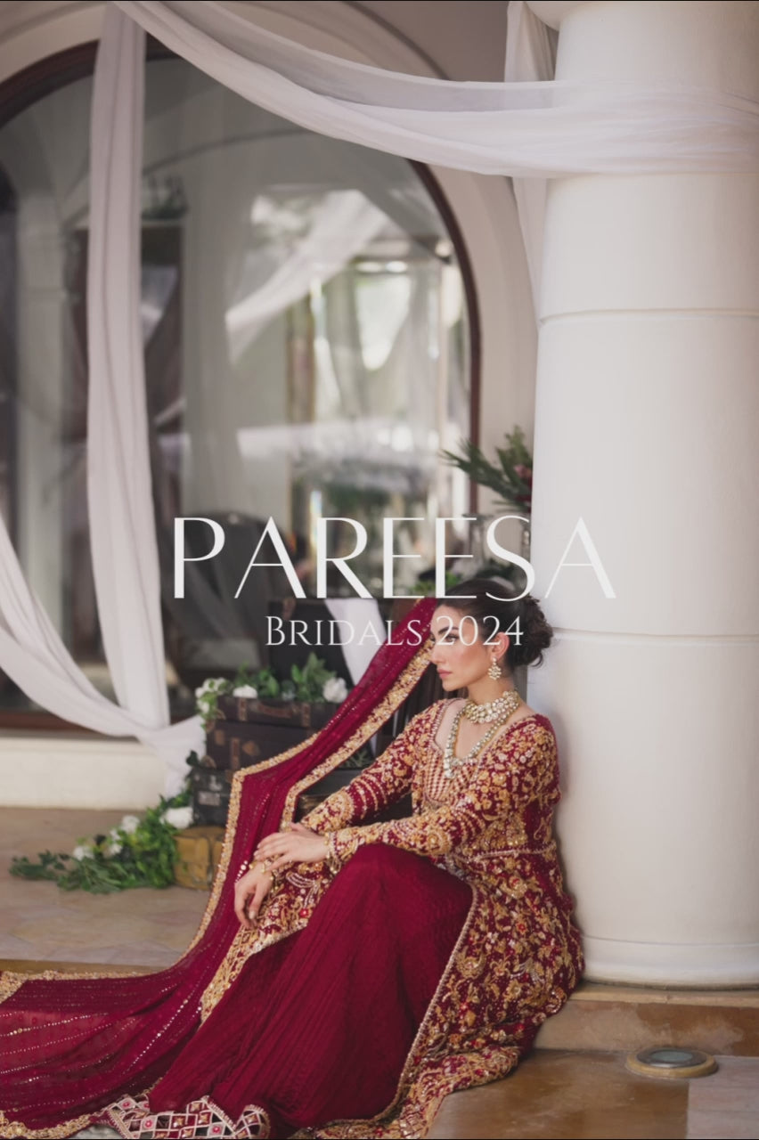 A south asian bride's heirloom is her classic red long shirt! The painstaking process of colour selection brings forth the royal maroon canvas for the 'Meenakari' bridal! As the name suggests, the intricacy of zardozi, naqshi and resham in this luxurious ensemble is unmatched. The magnificent shirt is paired with a crushed silk lengha with cutworked and resham encrusted borders! A silk net dupatta with its opulent handworked borders and kaamdaani jaal mirrors the work on the shirt, ensuring a cohesive and breathtaking bridal look!