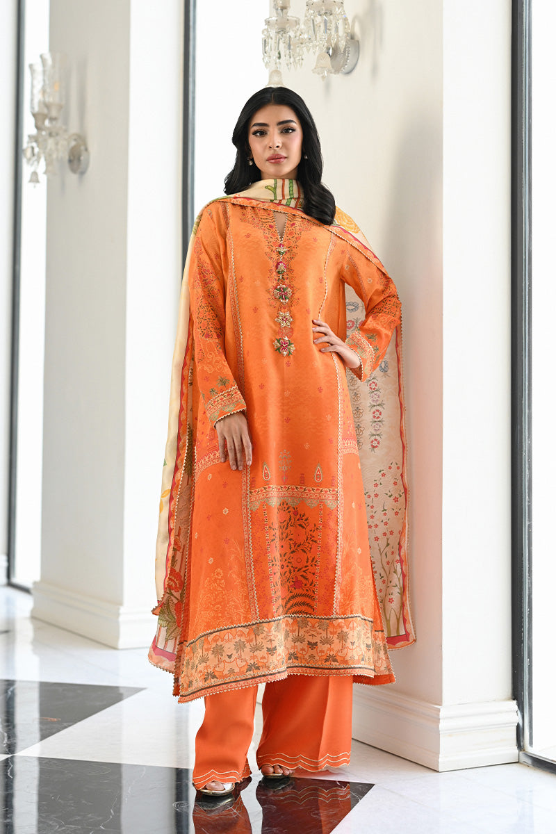 Our signature Mina Hasan prints make a come- back in this bright rust orange number! With classic floral motifs and a contrasting dupatta, this outfit rounds off well with hand...