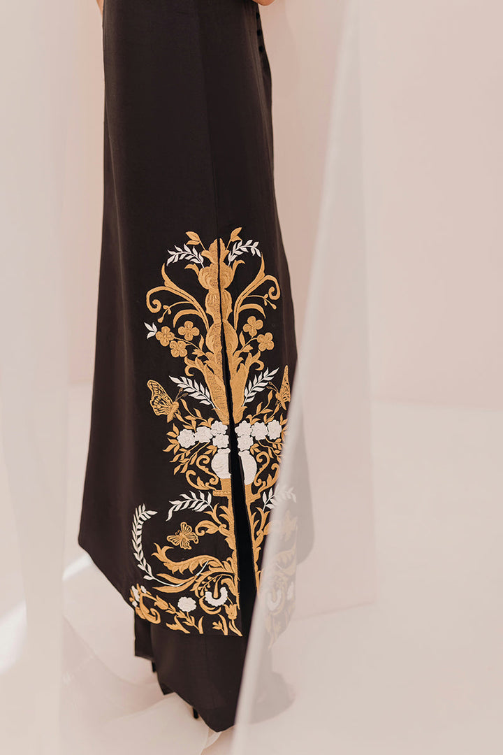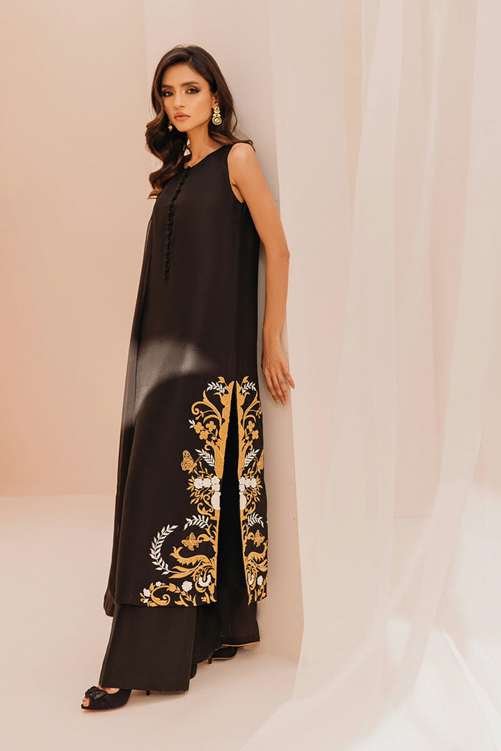 Look incredibly chic in this striking Mina Hasan outfit. Made in luxe raw silk fabric, the outfit features custom buttons on the neckline and carefully botanical baroque embroidery on the...