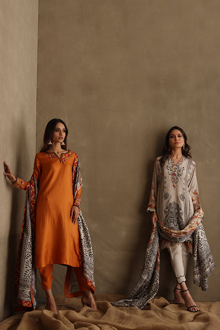 Our classic Mina Hasan digital kurtas come back in this monochrome number with colorful accents! Easy to wear and effortlessly elegant, this piece is a must-have in every wardrobe!