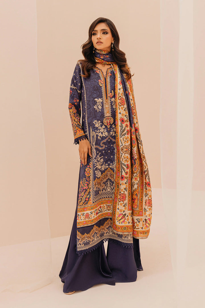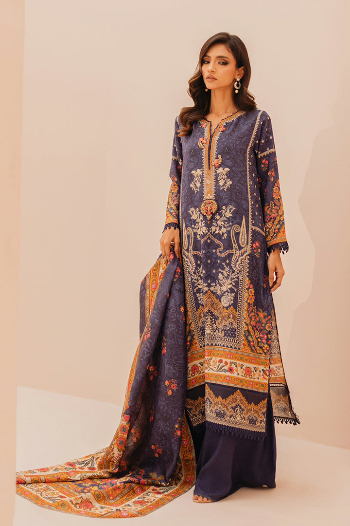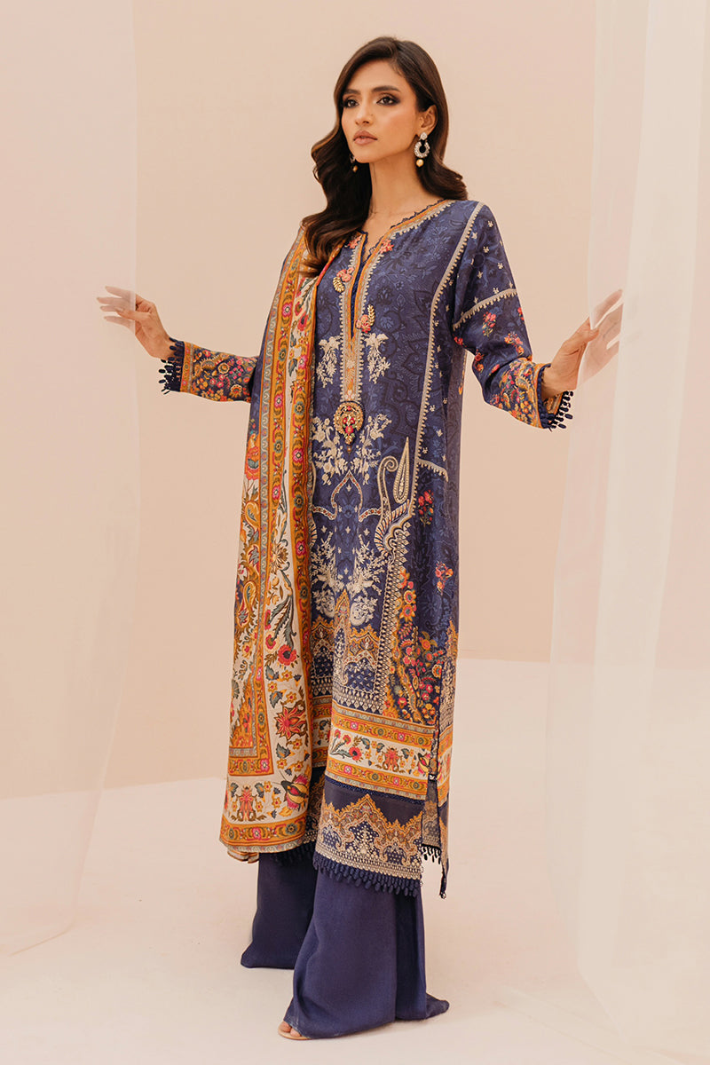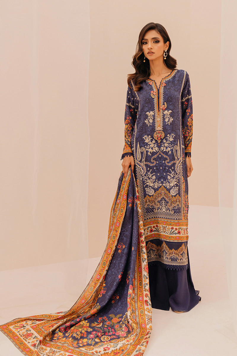 Our signature Mina Hasan digital print kurtas come back in a straight silhouettes and striking colors! Choose this navy blue option for effortless elegance ! Comes with hand worked button details and feminine lace edgings. Shirt and Dupatta are included, pants are optional.