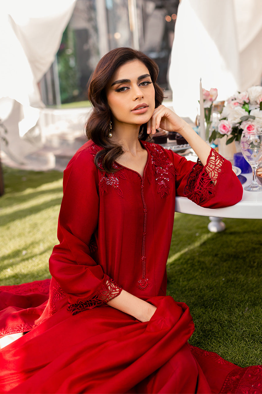 Elevate your style with our stunning raw silk kalidar, featuring intricate embroidered motifs and a modern handmade neckline. Enhanced by cutwork schfili border and sleeves, it exudes contemporary elegance. Paired with straight pants and an embroidered medium silk dupatta, this ensemble is a perfect blend of tradition and modernity, ensuring you make a statement with grace and sophistication.