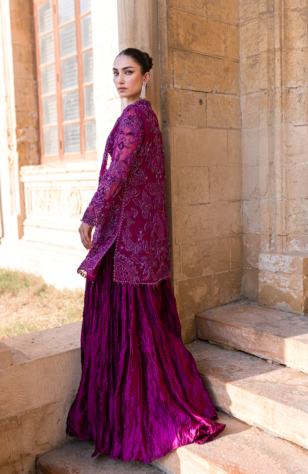 Featuring velvet appliques, cut dana and zardozi work, our Rose sorbet jacket is perfect for your festive event. It comes with an embroidered bodice and crushed lehenga, sprinkling the right...