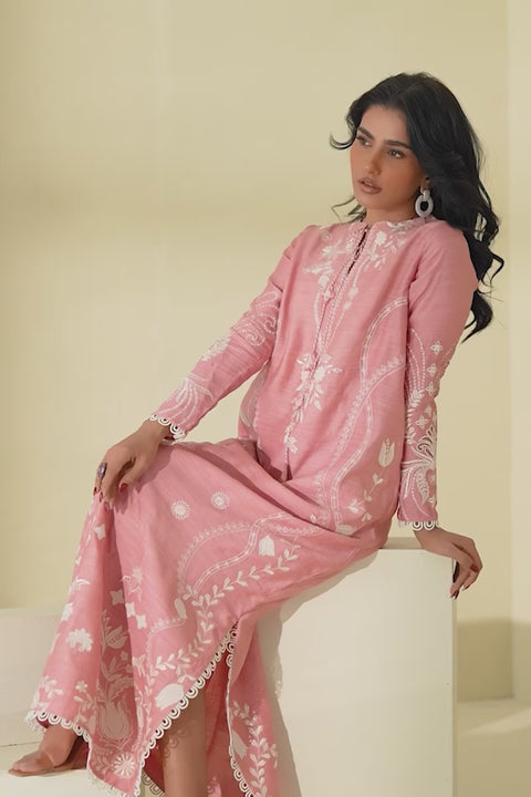 Perfect for summer and even better for outdoor events! This kaftan is made in a signature Mina Hasan kaftan cut and features delicate  appliques & threadwork through the neckline, the bodice and the sleeves of the outfit. The neckline also has 2 tassels that help tie the neckline together and add a decorative element.