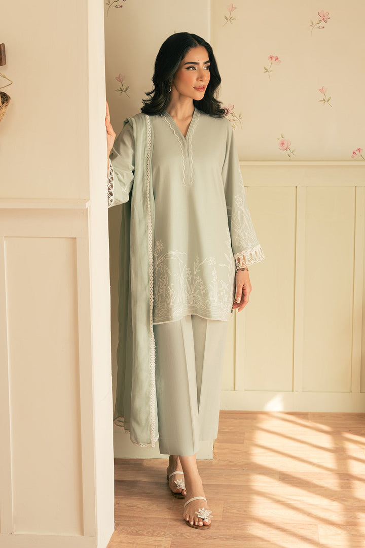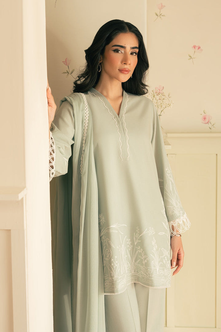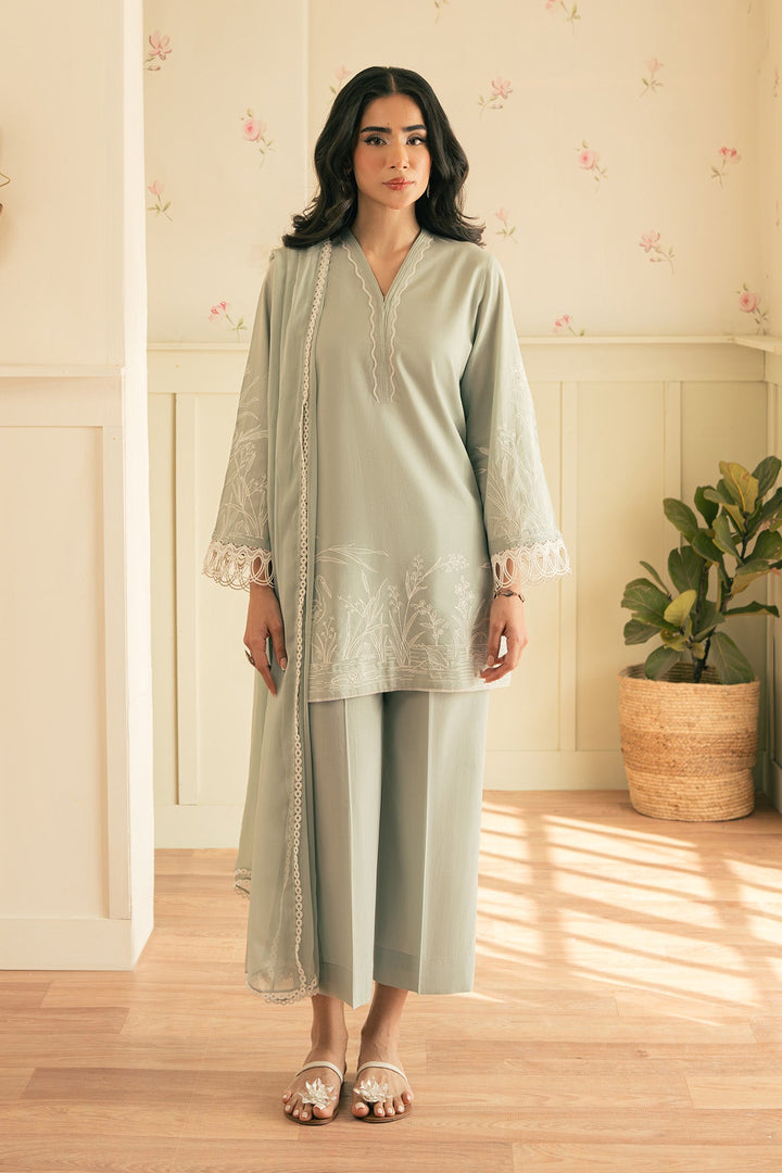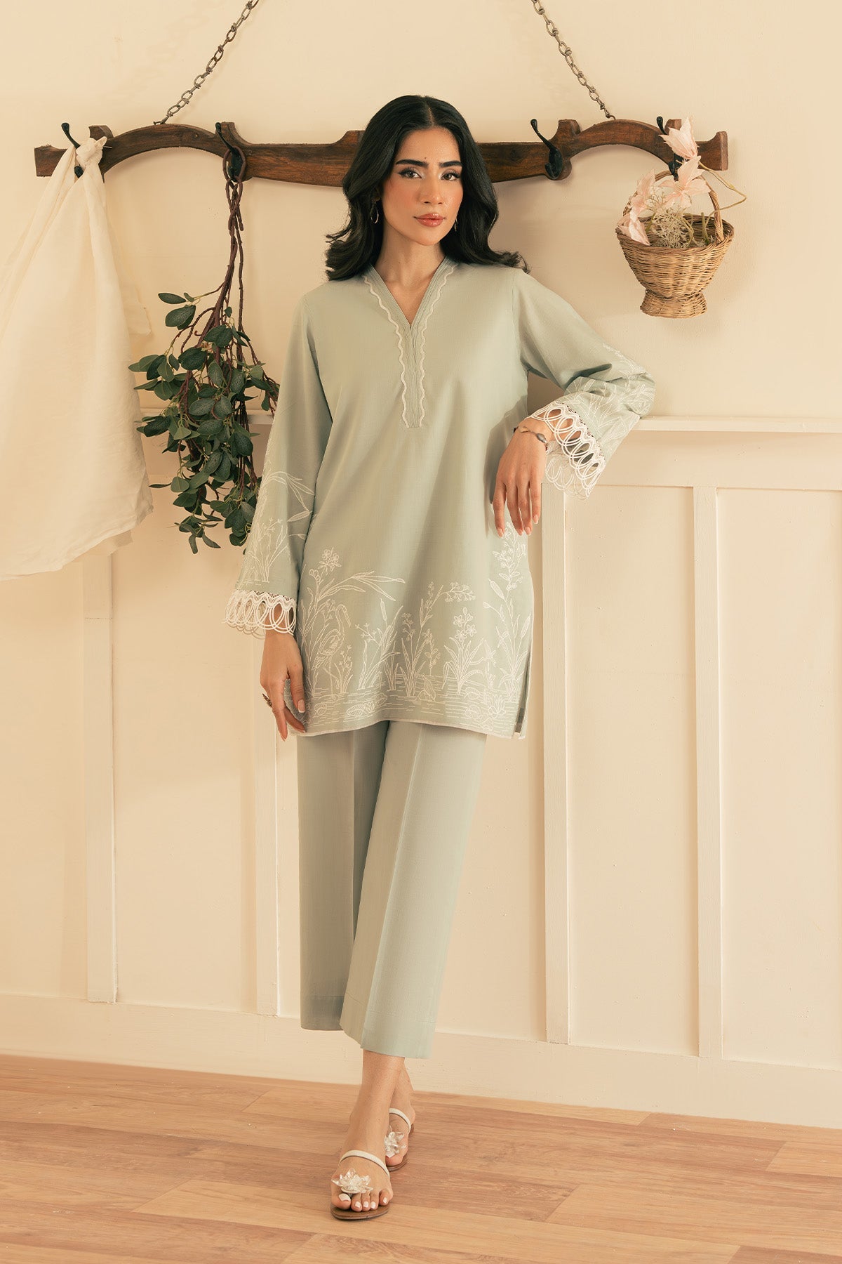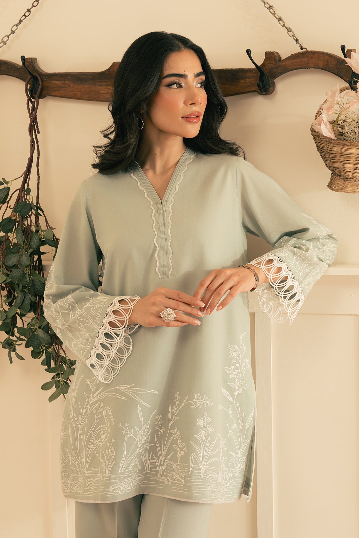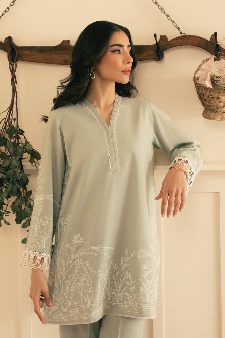 Quirky floral embroidery featuring playful flamingos and birds, creating a charming and lively design.