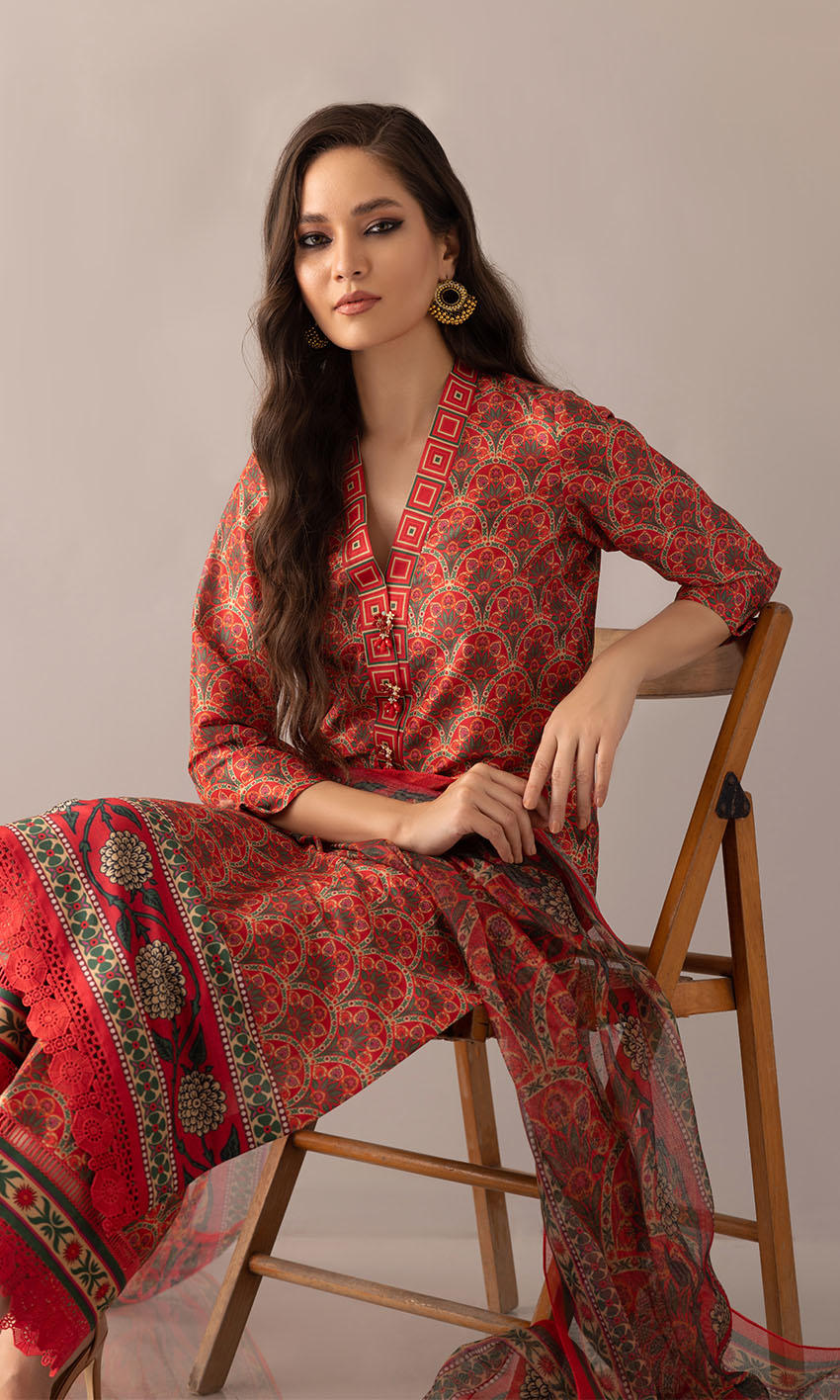 Fabric:Â Shirt & Pants: Raw Silk, Dupatta: Cotton Net