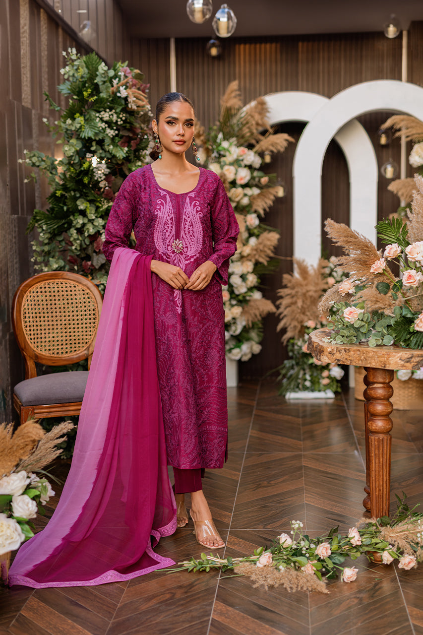 Introducing Tupe, a raw silk ensemble that redefines elegance. The stunning shirt features intricate Ari embroidery, elevated by an embellished neckline and embroidered buttons that add a touch of sophistication. Paired effortlessly with Straight Raw silk trousers, the ensemble reaches new heights of grace. The finishing touch comes with a chiffon dupatta, completing the look with a whisper of sheer