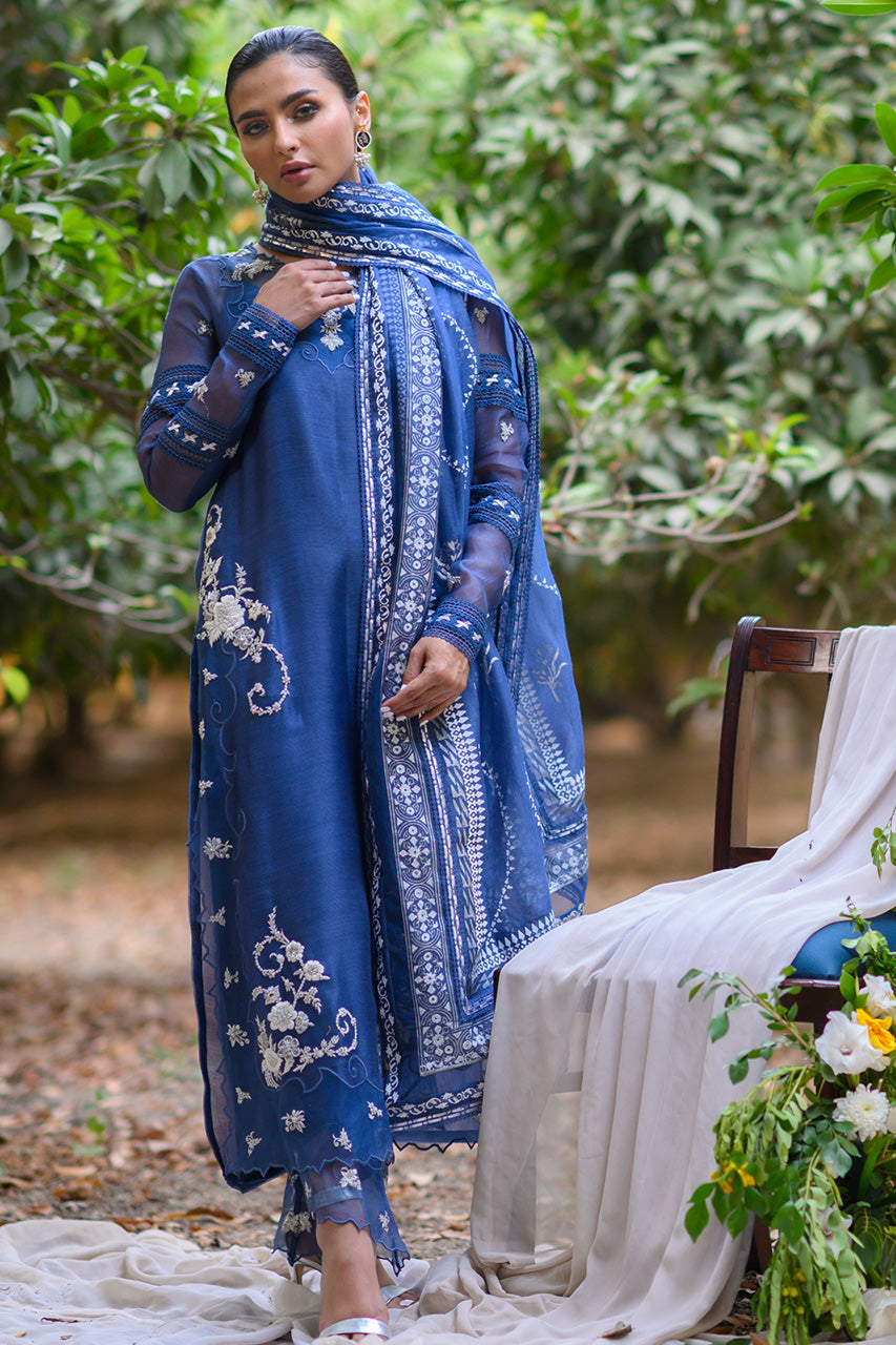 Detailed floral embroidery on a wintery blue canvas in addition to lace separators and mirror sprinkle. Pair it with our statement gotta detailed organza dupatta to give you that supremely...