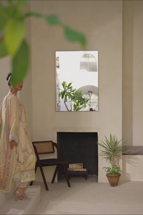 Brighten your wardrobe with this radiant three-piece ensemble, featuring a long yellow kora digital shirt adorned with intricate appliqué thread work on the neckline and sleeves. The shirt showcases beautiful digital prints throughout, creating a vibrant yet graceful aesthetic. Paired with a matching yellow kora digital dupatta, delicately finished with lace work all over, the ensemble exudes effortless sophistication. Completing the look are khaddi cotton izaar pants, beautifully embroidered to add depth and artisanal charm—perfect for festive days or celebratory evenings.
