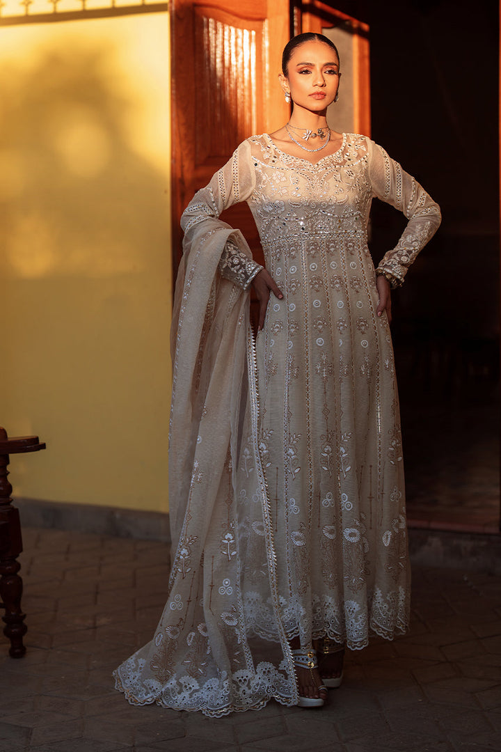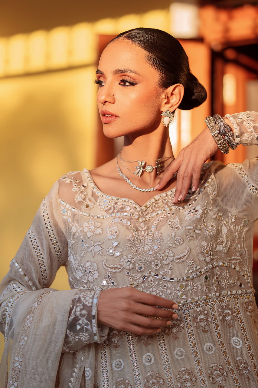 Exuding a sense of sophistication that transcends trends, this traditional long peshwas replete with embroidery, mirror work, and block print has got to be your top choice for Eid! The gotta weave adds an extra oomph to the outfit. It is paired with a block printed dupatta finished with organza and embroidered borders.